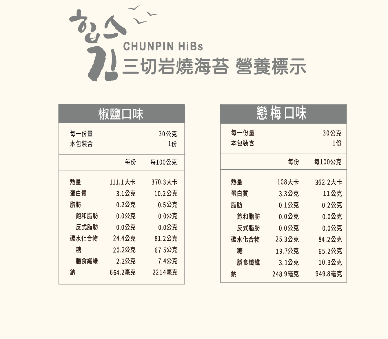 - 全台首創岩燒海苔梅子口味,梅子採用台灣梅嚴選製作,酸甜的絕妙滋味,爽口不膩,讓你欲罷不能的滋味絕非他莫屬。